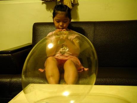最近姐妹倆愛吹「太空氣球」